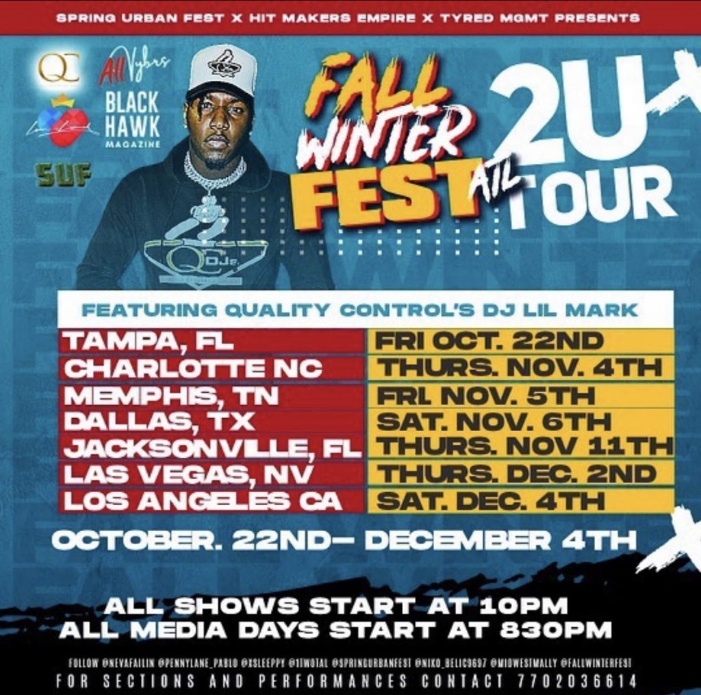 You ask what is all the hype about? Well I’ll get right down to it. One of the biggest independent artist festivals in the south east has teamed up with Quality Control Music to bring you the fall winter fest 2UTour. Independent artists across the country are at a loss for words about this combination.
